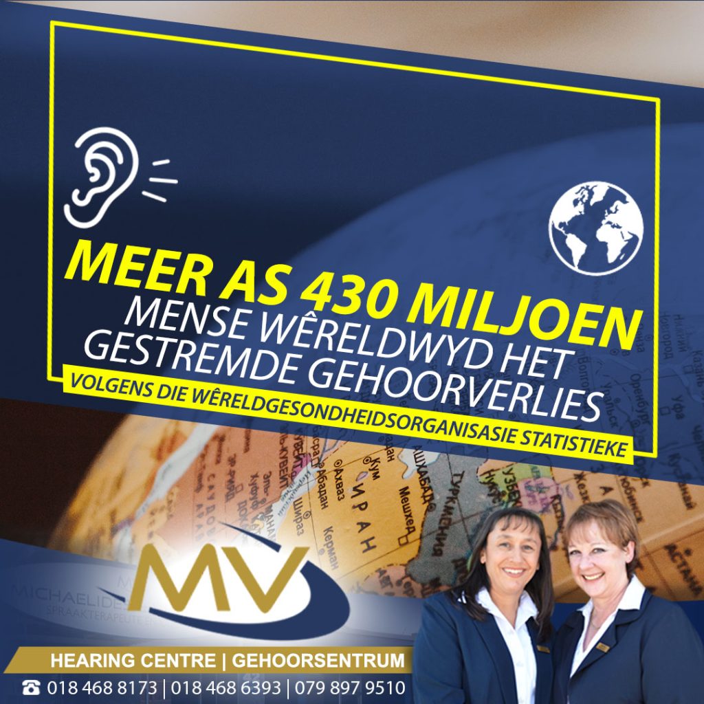 Meer as 5% van die wêreldbevolking – of 430 miljoen mense – benodig rehabilitasie om hul ‘gestremde’ gehoorverlies aan te spreek (432 miljoen volwassenes en 34 miljoen kinders). Daar word beraam dat meer as 700 miljoen mense – of een uit elke tien mense – teen 2050 gestremde gehoorverlies sal hê.